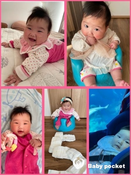 5ヶ月になる前の日、玩具を取ろうと手を伸ばして体をひねると、コロンと寝返りが出来たプアちゃん。寝返りは5ヶ月になったらかなと思っていたので、急にコロンと寝返りが出来てビックリしました。