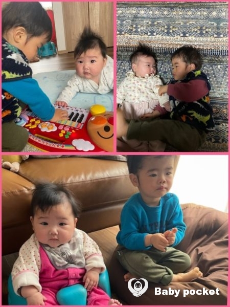 お兄ちゃんの青空くんの事が大好きで、側で遊んでいると青空くんのことをじーっと見つめて、安心した表情で一緒に遊んでいます。