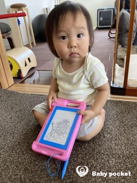 かもねぎ君は一歳三カ月になり、ここ一ヶ月でとても上手にとことこ歩くようになりました。床で伸びているワンコも上手によけて歩きます。自分の欲しいものを指差しでハッキリと要求するようもなりました。最近のお気に入りのおもちゃはペットボトルのなかに小さなネリケシをいれることです。とっても安上がりに加えて指先を鍛えるよい訓練になっているようで、ボタンをしっかりと押せるようになってきたと思います。コロコロでカーペットのほこりをとるお手伝いも大好きで、毎朝母と一緒にお掃除をしてくれます。気に入らないことがあるときれいに地団駄を踏むところもとても愛らしいです。感情がとても豊かになってきていて、意思の疎通が少しずつできるようになっています。