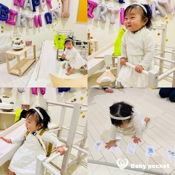 の瞬間から上りたくてうずうず。みんなからの「お誕生日おめでとう!」の言葉の途