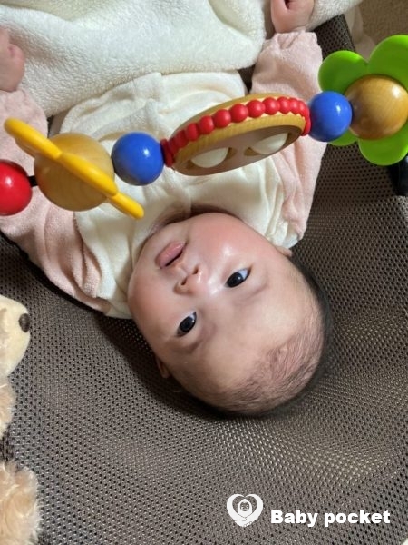 また、夜中に起きなくなり朝まで夜通し寝てくれることもあります。本当によく寝てミルクも沢山飲んで大きく成長しています。時々「あ〜」とお話しをしてくれて、私達は毎日ららちゃんにとても癒されております。