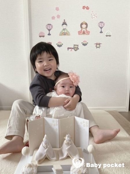ららちゃんはとても元気に過ごしております。先日初節句のお祝いをしました。お兄ちゃんのかいせいくんがららちゃんを抱っこしてくれて可愛いお雛様と写真を一緒に撮りました。