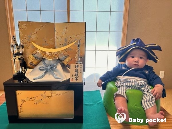 NORAME君の初節句は夫のご両親がNORAME君に兜飾りを送ってくれました。飾るところを静かに見守るNORAME君。完成に近づくと声を出して喜んでいるようでした。また鯉のぼりを飾ってくれたので、元気に泳いでいるところを見に行きました。鯉のぼりが風で泳ぐ姿をじっと見ていたので、健やかな成長と立身出世を願いました。
