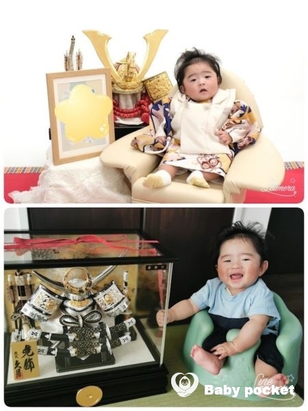 人見知りが早々に始まったさなか、初節句のお祝いに記念撮影に行ってきました。きっと泣いてしまうだろうと予想はしていたのですが、案の定大泣きでした。何とか泣き止んだ瞬間に数枚、真顔の写真が撮れました。とびきりの笑顔とはいかなかったものの、可愛い新作の衣装を着せていただき、とてもいい記念になりました。