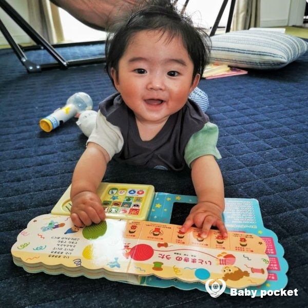 我が家に来た頃から泣き声が大きかった景虎くんですが、最近は更にパワーアップし、大きい声を出しています。喃語も出てきて、おしゃべりをとても楽しんでいる様子です。最近のお気に入りは歌の本で、音楽が流れると手足を思いっきりバタバタ動かして喜んでいます。ママやお姉ちゃんが音楽に合わせて手遊びをすると、景虎くんも楽しそうにニコニコ見てくれています。動物にも興味津々で、我が家の愛犬が近づいてくると大笑いしたり、最近はアルパカを見に行き、アルパカにも大笑いして喜んでいました。これから動物園や水族館に一緒に行くのがとても楽しみです。