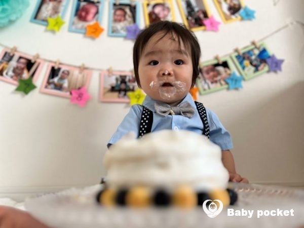 最後の締めくくりは、母手作りのスマッシュケーキでお祝いしました。豪快にスマッシュ‼とはなりませんでしたが、ゆっくり堪能しながら食べ進めていました。普段の食事では大きなお口を開けて食べるのに、ここは何故か慎重なペガサスくん。クリームをつけた可愛い表情も沢山撮影しました。