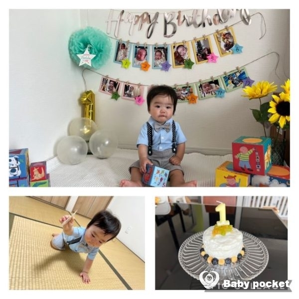1歳を迎える一週間前に掴まり立ちができる様になり、前日には数歩の伝い歩きが出来るようになりました。