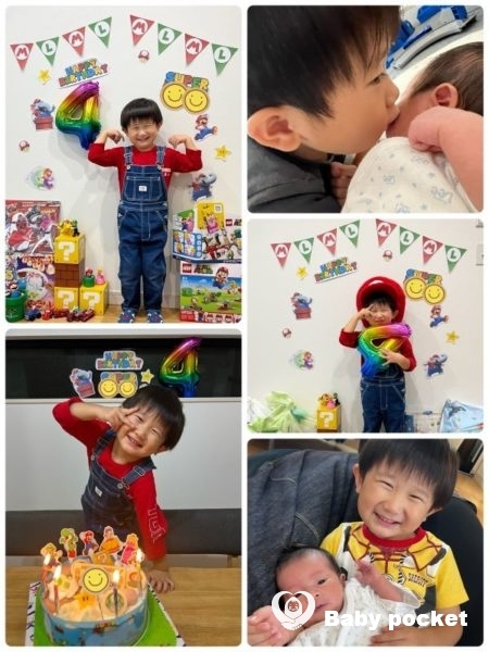 お誕生日の当日の朝、1番に起きたロコくんは「(ロコくんのこと)みて!!!!4歳なったからちょっと背ぇ伸びてるわ!!!」と、朝からハイテンションでした♪