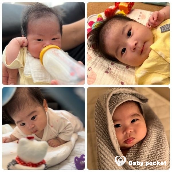 生後3ヶ月になる数日前に初めての寝返りに成功し、生後100日目前に左右両方からの寝返り&寝返りがえりをし家族を驚かせました。