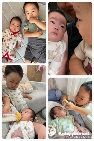 チルにぃにもあまみちゃんを受け入れ始めてくれて、オムツをもってきてくれたり、ママがミルクをあげていると哺乳瓶を一緒に持ってくれたりするようになりました。