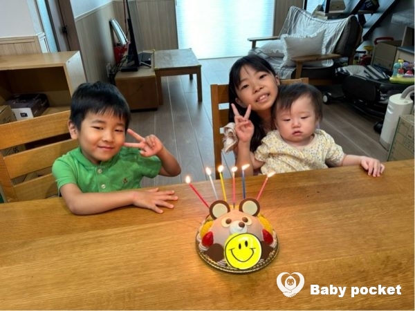 中国のお盆休みで9月末にパパが帰国していたのでセイルくんのお誕生日は5人でお祝いする事ができました。