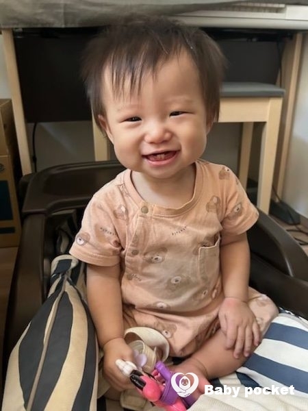 最近覚えた手をフリフリするバイバイを披露しご近所さんに褒められ嬉しそうでした。