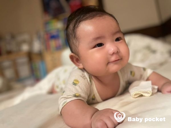 おかかくんは、4ヶ月を迎えた頃から1人で寝返りができるようになり、最近ではうつ伏せの状態でしっかりと首を持ち上げ周囲のものをじーっとみたり、キョロキョロしています。