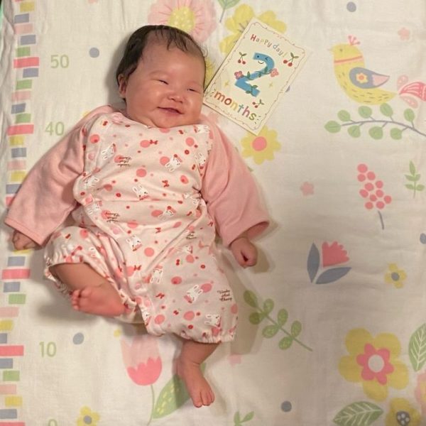 2か月を迎える少し前から、あやすと笑ったり喃語が出てきました。