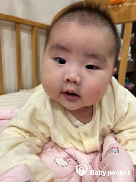 お兄ちゃんのマリンくんが大好きなようで、じーっと見つめたり、マリンくんがあやすとよく声を出して笑っています。