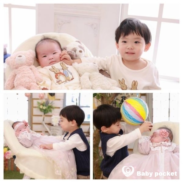 その後、スタジオでの写真撮影になるとぱっちり目を覚まし、笑顔を振りまいて可愛らしい写真をたくさん撮らせてくれました。