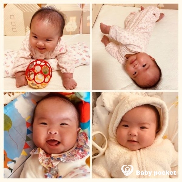 目を合わせると嬉しそうに口を開けて満面の笑顔を見せてくれたり、「うぶぶ、うきゃあ」とおしゃべりをしてくれたりします。