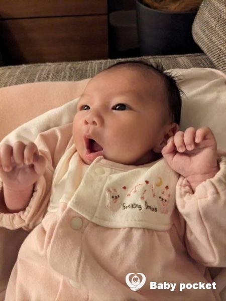 ミルクの量も順調に増えており、泣き声も力強く大きくなってきました。夜の睡眠時間も少しずつ長くなってきたように思います。