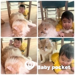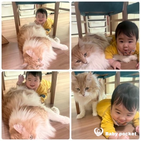 大猫は承太郎くんが赤ちゃんだと理解しているのか、いつもそばで見守っているのです。