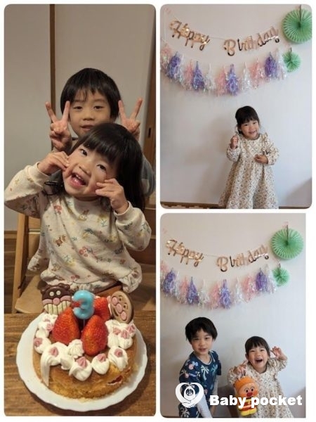 誕生日のときには、お兄ちゃんと一緒にケーキを作りました。生クリーム好きでないリラちゃんは、大好きないちごをたっぷり飾りつけ、もうひとつ大好きなアンパンマンチョコを飾りつけて、大満足でした。