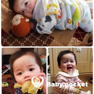 最近は、ずり這いでどこへでも移動して行動範囲も広がりました。名前を呼べば振り向いてくれたり私たちのとこまで来てくれたりします。お喋りも好きで叫んだり喃語を言ったり声が出ることを楽しんでいるようです。