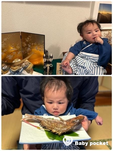 お食い初めでは、食べ物を口元に運んでも口はまだ開くことはなかったですが、ここ最近口元に食べ物を運ぶと口を開くようになりました。色々な食べ物を食べて大きくなってほしいです。