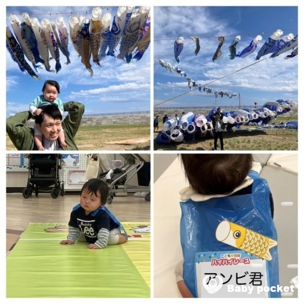 また、数百匹が泳ぐ青いこいのぼりを見に行ったり、祖母が作ってくれたこいのぼりケーキでお祝いをしました。