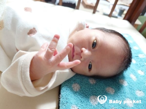 ミルクを飲むときには可愛い両手を哺乳瓶を抱くかのようにし、80㎖をあっという間に飲んでしまいます。まだ飲みたそうに口をちゅぱちゅぱさせる姿はこれからの成長を感じさせてくれます。