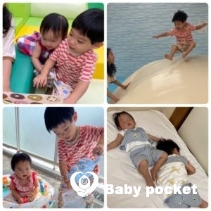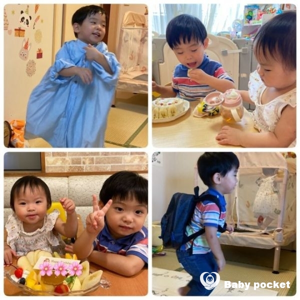 二人で布団にダイブして歓声をあげたり、「お!」「お!」と言い合いっこして爆笑したり、一緒に遊んでいることも増えてとても微笑ましいです。