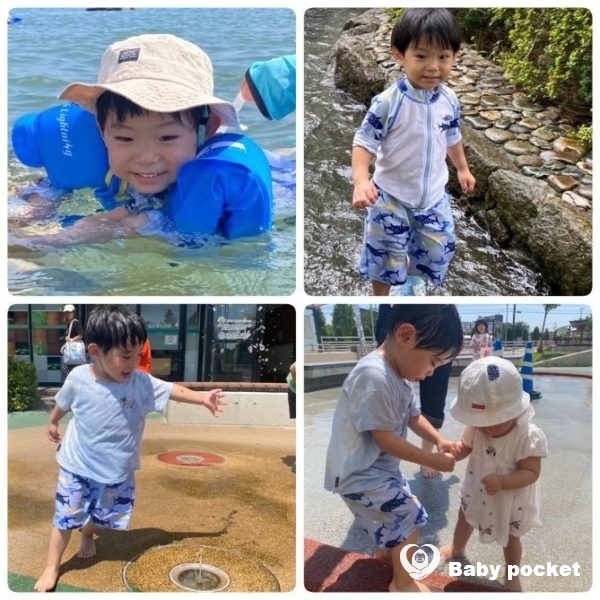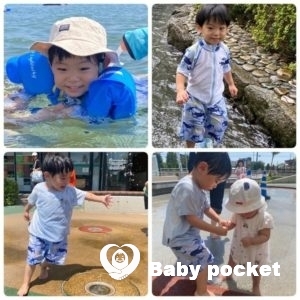 7月にはパパ方のばあば宅ではとこたちに遊んでもらい、公園の噴水遊びも満喫しました。