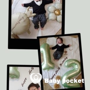 お家で記念撮影をしたのですが、るーちぇ君は大好きなキラキラがついた風船に夢中でなかなかこちらを見てくれず大苦戦でした。しかし、なんとかカメラを向いてもらい可愛い写真を撮ることができました。