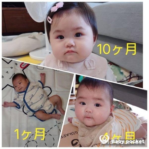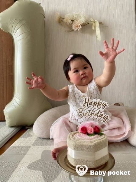 6カ月まではミルクごくごくで丸々っとした赤ちゃん体型でしたが、6カ月から離乳食が始まり、そして7カ月からはハイハイで動けるようになったことでだいぶスリムになりました。腕はパンパンで「ちぎりパンちゃん」とあだ名が付くくらいでしたが、1歳を迎えた今はその面影がうすれて、可愛さだけは増しましです。