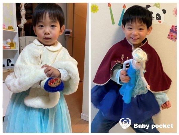 子ども服のお店でエルサとアナのドレス風ワンピースを見つけて離さなくなり、買いました。