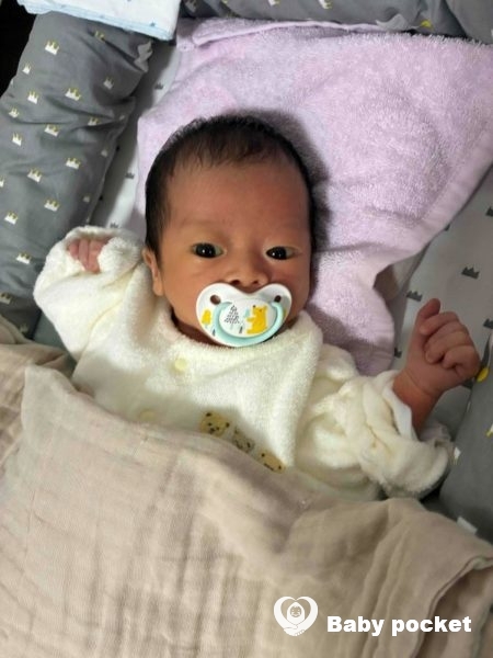 お腹が空くと大きな泣き声で教えてくれ、おしゃぶりが欲しい時には、口元におしゃぶりが来ると食らいつき、欲しくない時にはベーっとしてくれる、意思表示の強い子だと感じています。