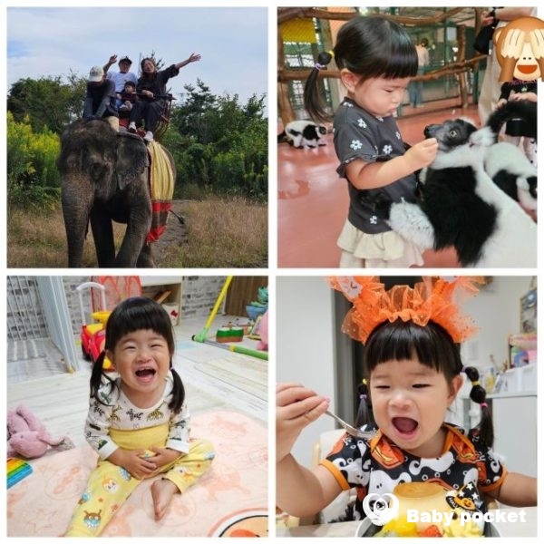 秋のお出かけではゾウに乗りたくさんの動物にご飯をあげていました。