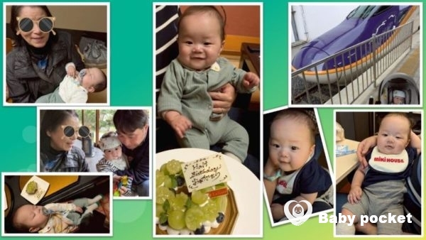 富士Sunパパの故郷でお祝いをするために、初めて新幹線に乗ってお出かけしました。新幹線の車内ではぐずることなく、むしろリラックスしており、おとなしく乗車していました。