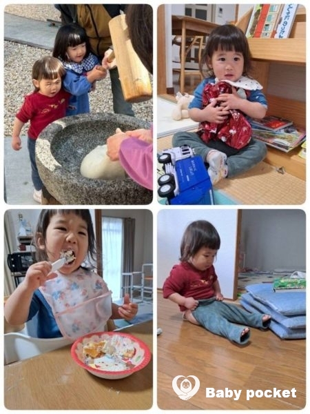 つきたてのお餅はみんなでお庭で食べ、かおるくんはミニミニきな粉もちを何個もおかわりをしていました。