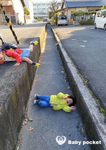 散歩中は自分の意思で行きたい方向ややりたいこと(石を拾いたい、溝に入りたい等)にそぐわないことがあると、地面にひっくり返って泣き叫びます。