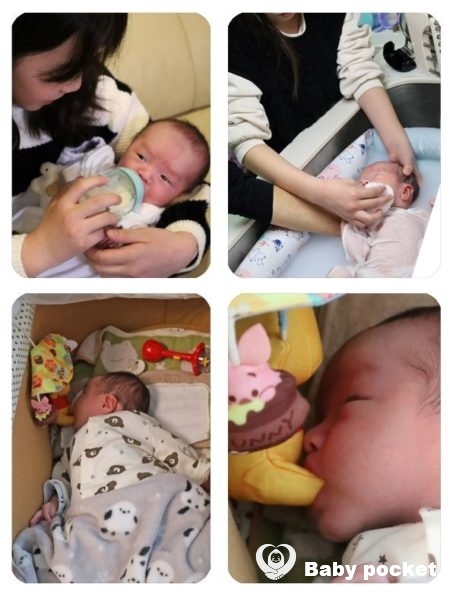 ①おねえちゃんのあくびちゃんは、ミルクを作って飲ませる、おむつ交換、沐浴の手伝いと大活躍で両親に少し余裕ができています。3人で育てるって約束したもんね。