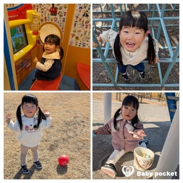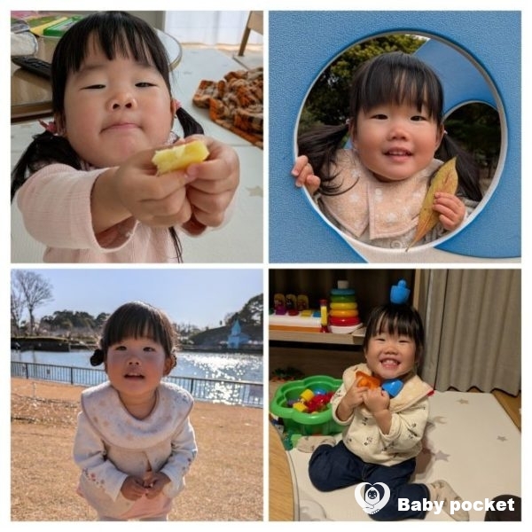 1年前にはよちよち歩きだったのが、どんどん歩くのが上手になっていき、今では家の中でも外でも元気に走り回るようになりました。お外で遊ぶことが大好きで、公園!散歩!とお外に行きたい時はしっかり教えてくれます。公園では一緒に追いかけっこをしたり、ボール遊び、お砂場遊び、公園の遊具で遊んだりと元気いっぱいに過ごしています。他にも、お空を飛んでいるヘリコプターや、地面を歩いている虫をじっと眺めたり、近くの川の水を見て、「お水流れているね」と話したりと、ホットミルクちゃんにとってお外の世界は新しい発見がたくさんあるようです。私達も、そんなホットミルクちゃんとのお散歩を楽しませてもらっています。