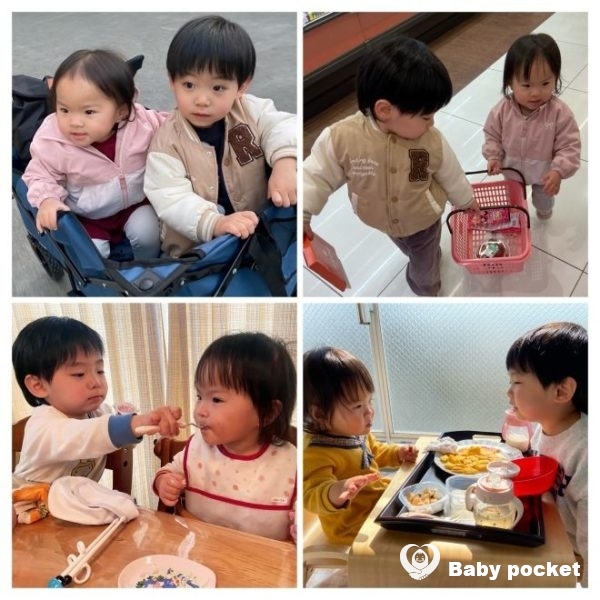 手をつないで買い物をしたり、着替えをしてあげたり、ルーちゃんが食事をいやいやするときはティガーくんが食べさせてあげたりします。