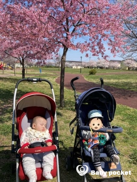 6ヶ月を迎えた当日は晴天に恵まれ同じ年のお友達と交流しながらお花見を楽しみました。