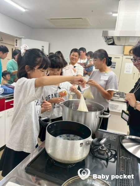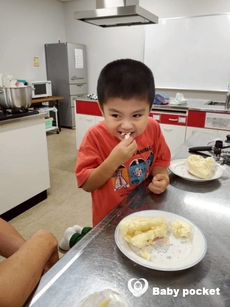防災ワークショップの最初のプログラムは蒸しパン作りです。ホットケーキミックスと水をアイラップに入れて蒸すだけで、簡単にできておいしく食べられる非常食の出来上がりです。子ども達からも「想像以上にとってもおいしかった」「次はチョコレートチップを入れて食べてみたい」と、大好評でした。