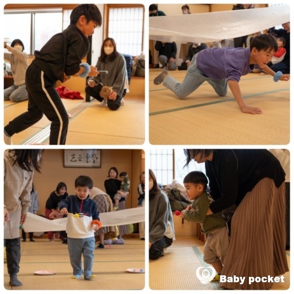 1歳から11歳まで幅広い年齢の子どもたちが走ったり探したり、協力したりしながら、にぎやかに楽しむ姿が見られました。特にリレー形式の競技では、小さな子どもたちが保護者と一緒に参加し、みんなで声援を送り合う微笑ましい時間となりました。